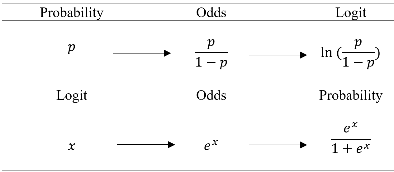 It is essential that you get familiar with the three concepts (probability, odds, logit) and how these three are related to each other for interpreting the logistic regression parameters.